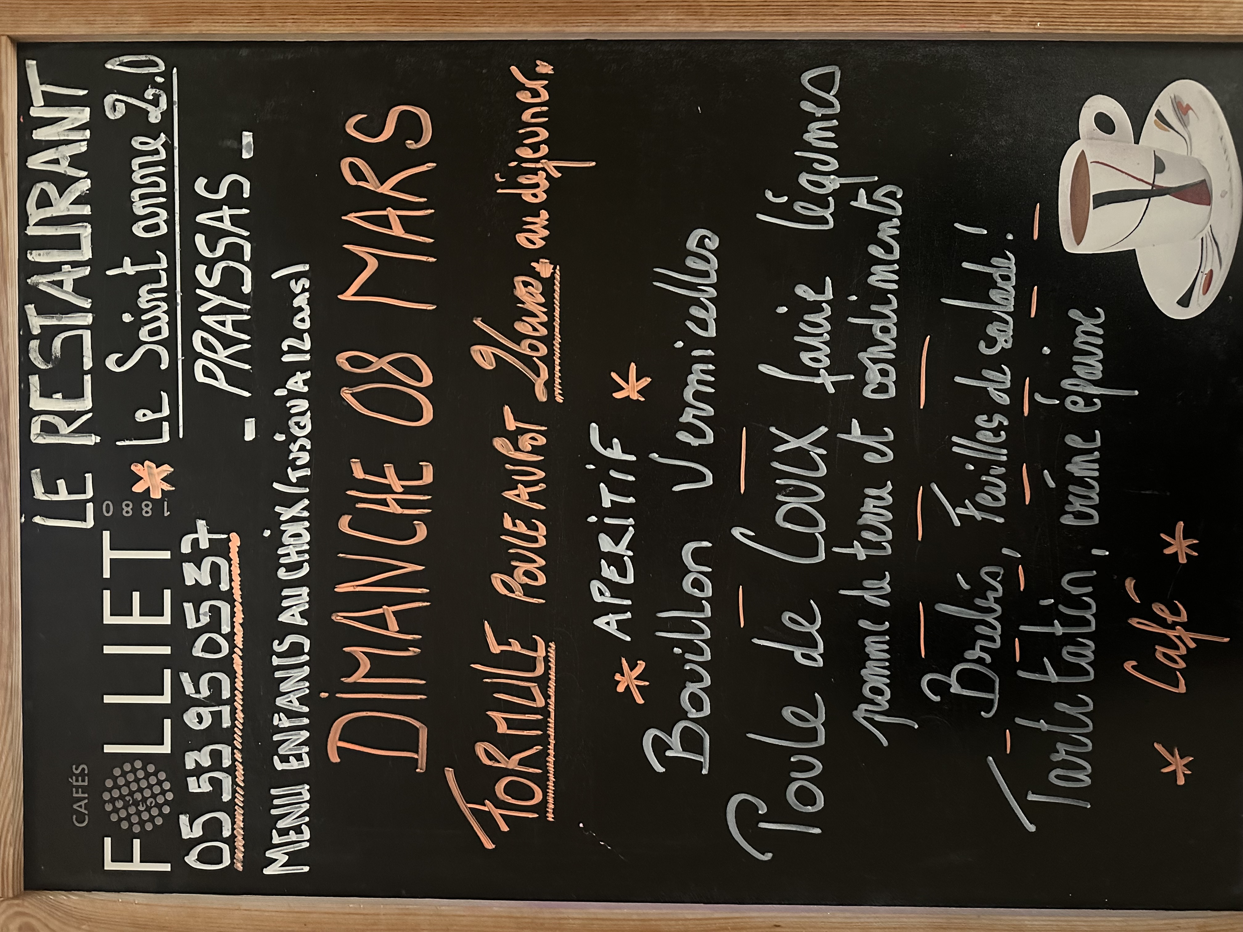 Puis un menu à 28,00€ en Entrée plat et dessert ou 26,00 € entrée-plat ou plat-dessert servis le Dimanche midi.